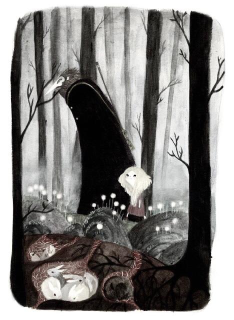 Corrían bajo la esquiva luz lunar por el camino que discurría junto al hayedo: centenares de grandes monstruos de anchos troncos y altas ramas que se alzaban hacia la oscuridad. Todas las sombras eran amenazas, cada ruido extraño una razón para apresurar más el paso.