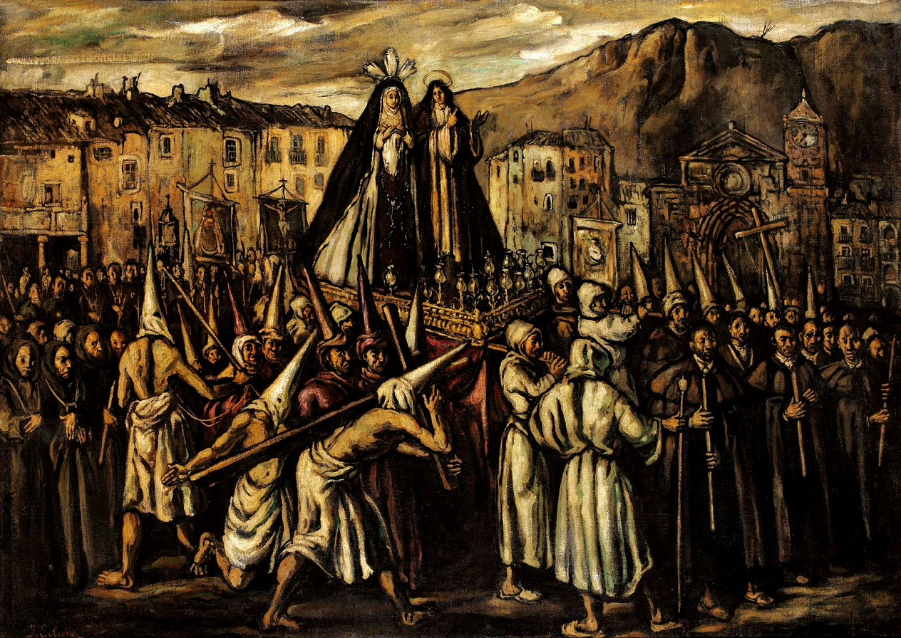 Las procesiones eran manifestaciones públicas de fe y penitencia características de la Semana Santa en el medievo. Los fieles recorrían las calles portando imágenes religiosas, especialmente de la Virgen María y Jesucristo, en pasos o andas ricamente decorados. Los participantes, conocidos como penitentes, vestían túnicas y capirotes que cubrían su rostro, simbolizando el anonimato y la humildad ante Dios. Algunos penitentes practicaban la autoflagelación o caminaban descalzos como muestra de arrepentimiento y sacrificio.