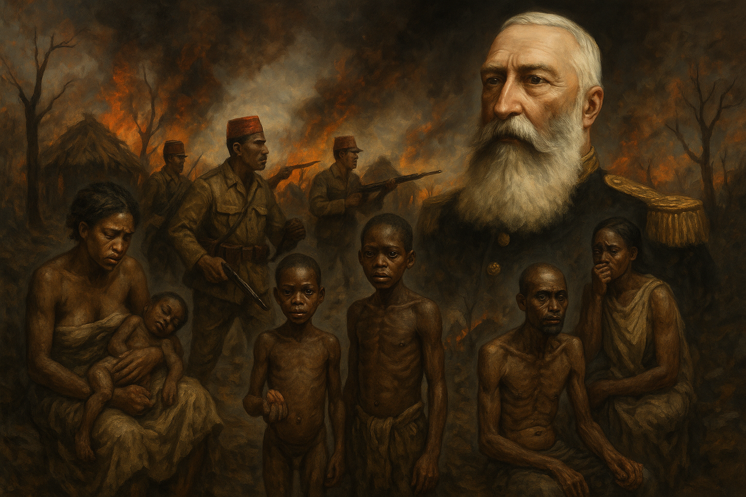 Pero no todo fue muerte directa. También hubo hambrunas provocadas por la desestructuración de las comunidades, enfermedades propagadas por las condiciones infrahumanas y la ruptura total de las formas tradicionales de vida. Familias separadas, aldeas arrasadas, niños obligados a trabajar o utilizados como rehenes… fue un sistema de terror meticulosamente calculado.